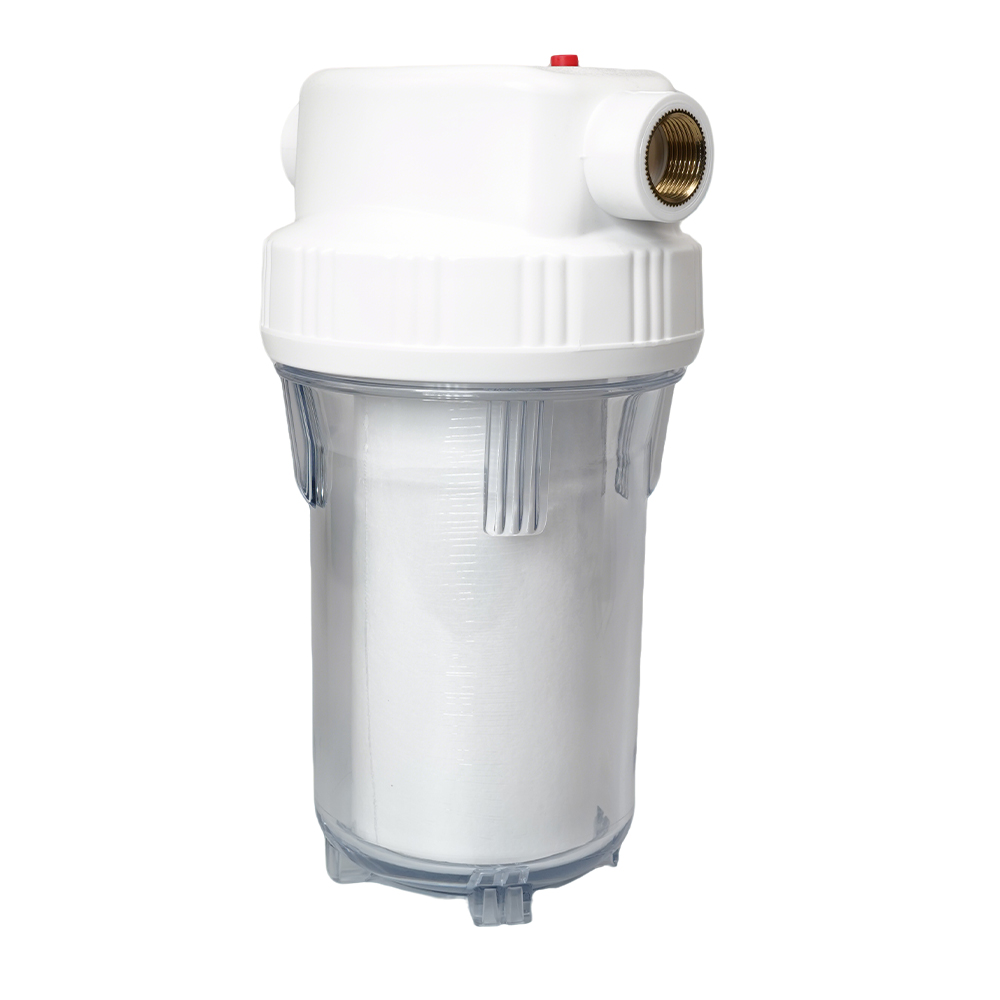 1. Sellado superior: esta carcasa de filtro de agua para toda la casa se adapta a filtros de agua de sedimentos, etc. de 10 "x 2,5", con botón de alivio de presión, entrada de 3/4 de pulgada, puerto de rosca y junta tórica doble, asegurándose de que no haya fugas de agua después de un uso prolongado.