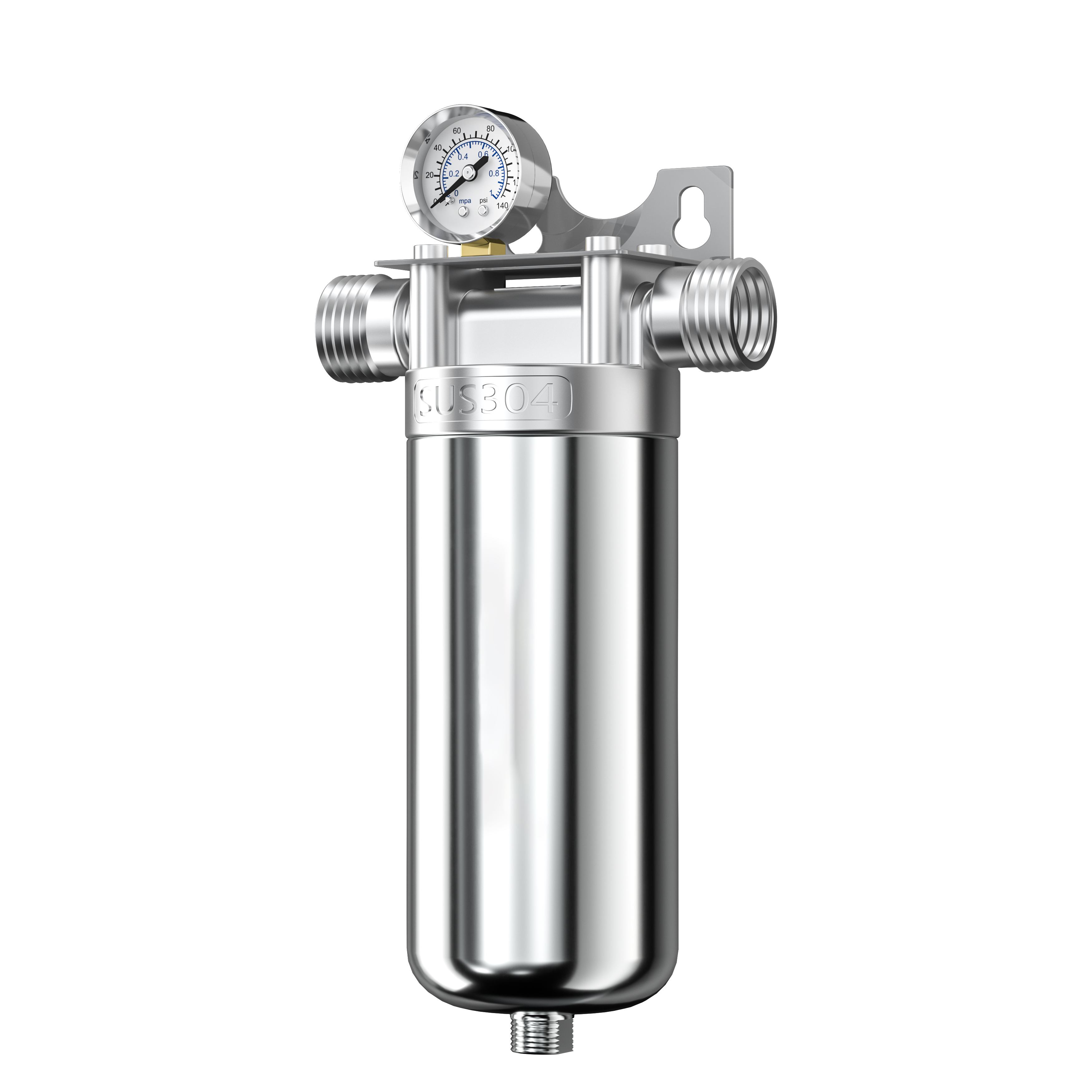 Construida para una mayor longevidad, esta carcasa de filtro de alta calidad está fabricada con acero inoxidable 304 apto para uso alimentario y ofrece una resistencia excepcional al desgaste, la corrosión y las altas temperaturas. Con una temperatura máxima de trabajo de 97 °C y una tolerancia de presión de 300 PSI, garantiza un rendimiento confiable en condiciones exigentes. La carcasa cuenta con un filtro de alta precisión que elimina eficazmente sedimentos, óxido y sólidos suspendidos, proporcionando agua más limpia y protegiendo sus tuberías y electrodomésticos. Su construcción robusta garantiza una solución de filtración de agua segura, saludable y duradera para su hogar.